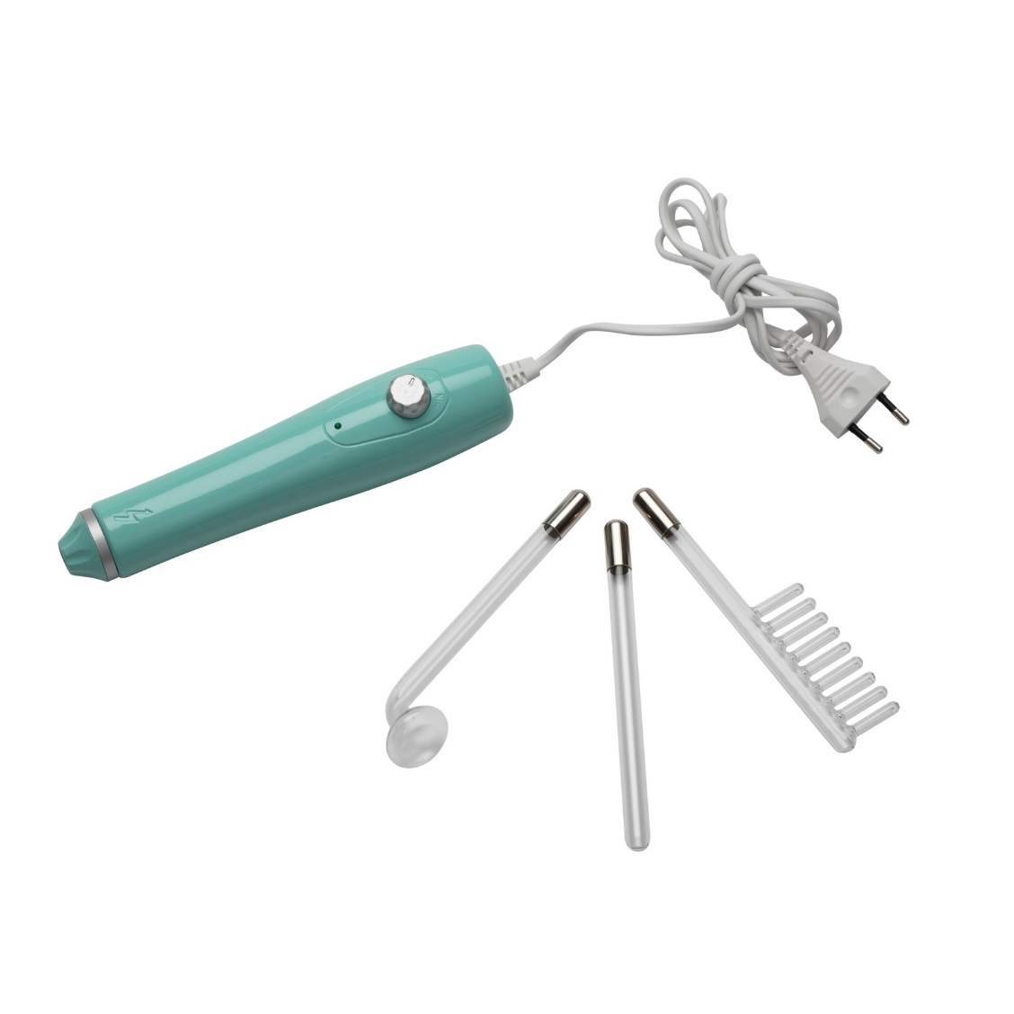 При дарсонвализации импульсные токи передаются на кожу через герметичный пустотелый стеклянный электрод, наполненный разряженным инертным газом под низким давлением. Корпус прибора и электроды легко дезинфицировать перед их применением.